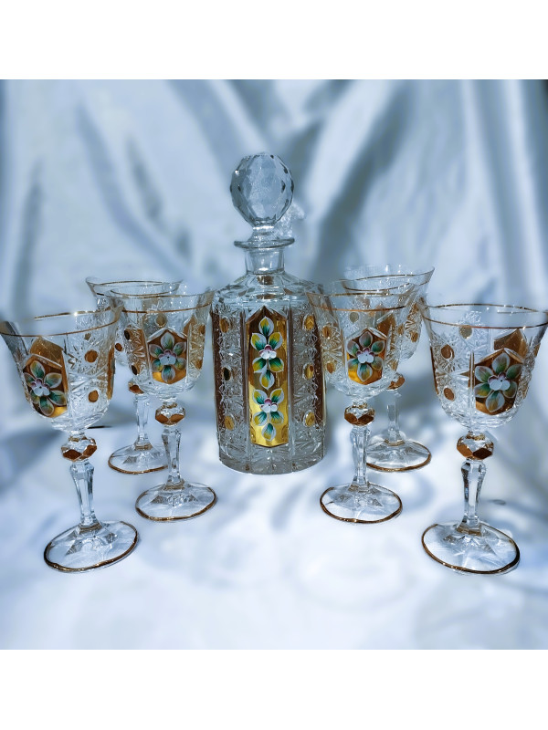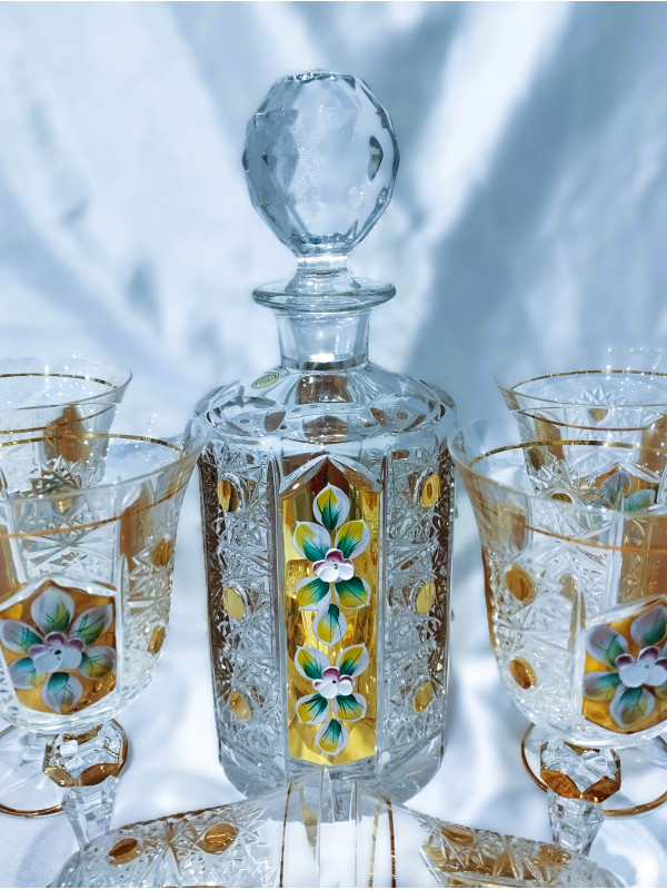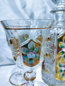Originální a opravdu elegantní set na víno. Láhev i skleničky jsou zdobené ručně kreslenými květy. Jedná se o precizní práci českých malířek!