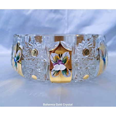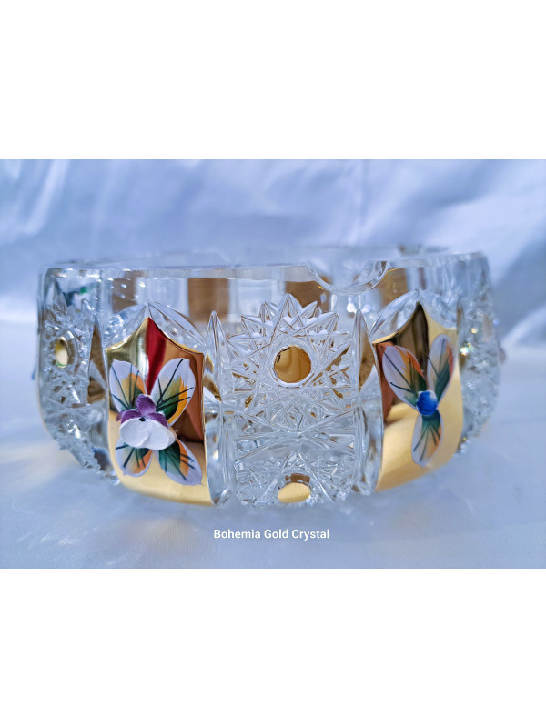Broušený popelník se zlatem a smaltem 18 cm