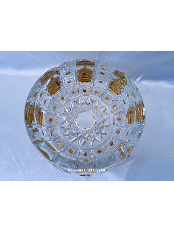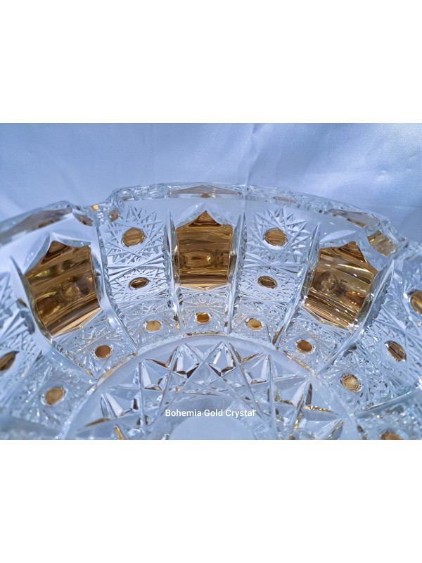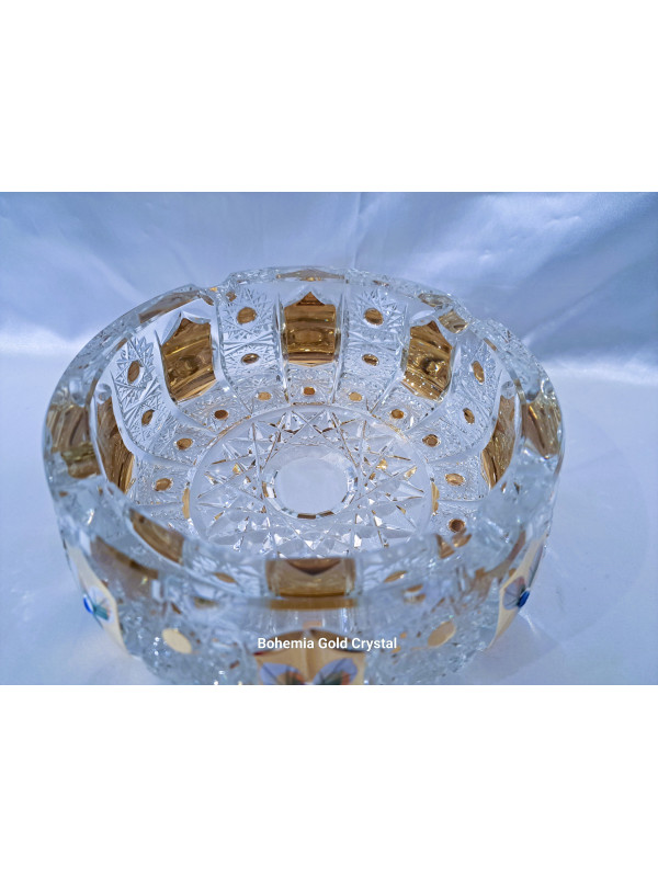 Velký a těžký broušený popelník. Popelník je zdobený zlatem a smaltem. Jedná se o ručně zdobený kousek z české dílny. Šířka popelníku je 18 cm.
