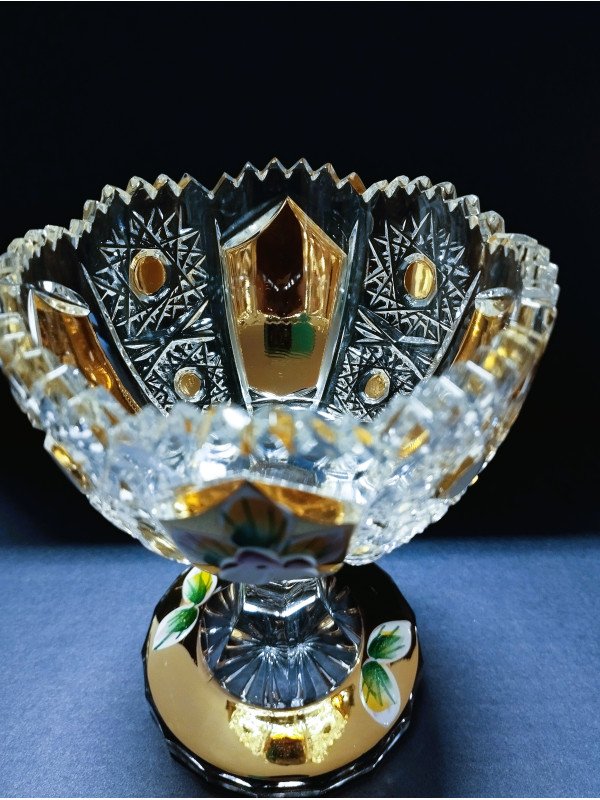 Broušená mísa 65688/57110/092 zdobená zlatem a smaltem.