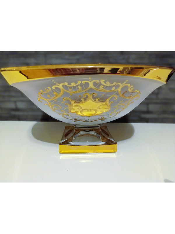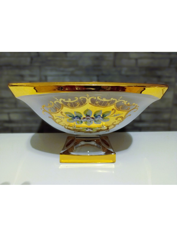 Barevná mísa z křišťálu zdobená smaltem a zlatem.