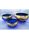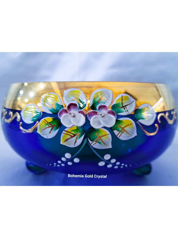Modrá mísa na třech nožkách zdobená zlatem a smaltem. Jedná se o ručně zdobený kousek z české dílny. Skladem 3 velikosti. Šířka mísy je 16,20 nebo 24 cm.