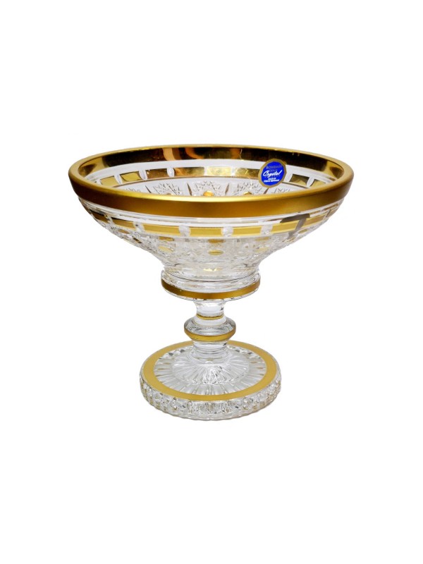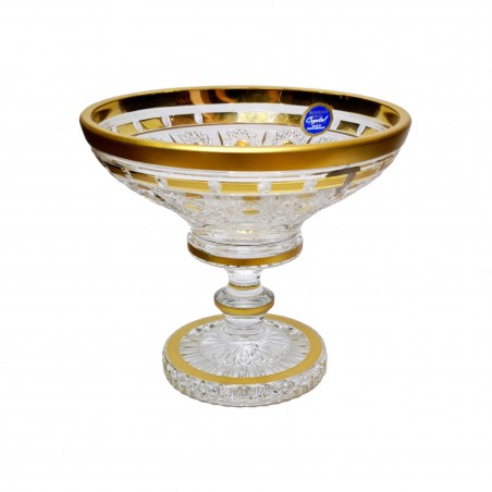 Mísa na noze (= nástolec) zdobená oblíbeným brusem PK 500 (57001) a zlatem. Vhodné k dekoračním účelům, oblíbené zejména v zahraničí. Velikost mísy je 30,5 cm.