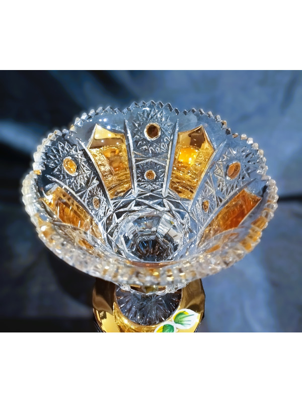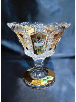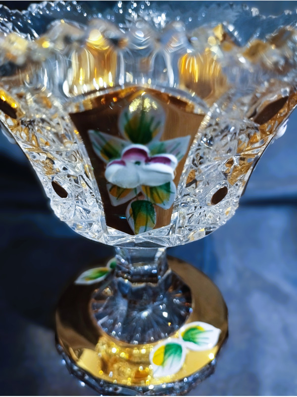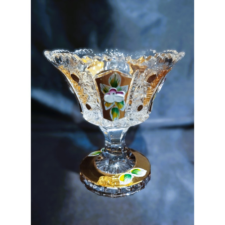 Honosná miska na noze z broušeného skla. Jedná se o nádherný kousek zdobený ručně broušeným dekorem 57110. Průměr 12 cm.