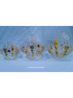 Krásný broušený koš zdobená zlatem a smaltem, dekor 57110. Tento druh dekoru je velmi oblíbeným zejména v zahraničí. V nabídce dvě velikosti.