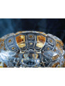 Bohatě broušený popelník na noze, se zlatem a smaltem. Popelník má průměr 13 cm.