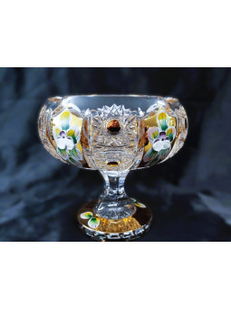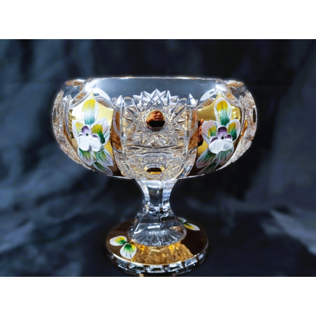 Broušený popelník 70086/57110/130 na noze zdobený zlatem a smaltem
