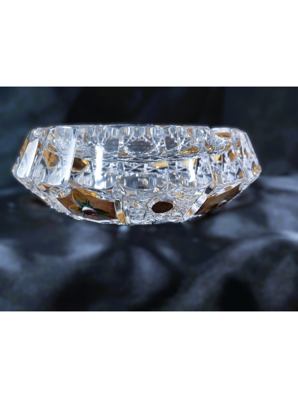 Broušený kosený popelník 70086/57110/130 zdobený zlatem a smaltem