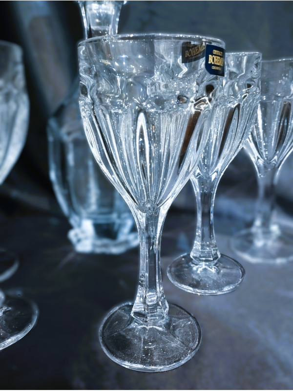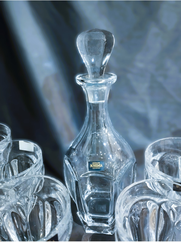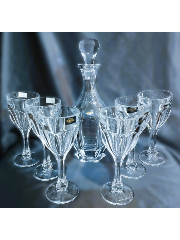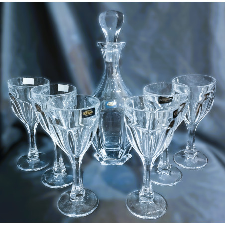Sada šesti sklenic a jedné lahve na víno z kolekce Safari. Bezolovnaté sklo od společnosti Crystalite je velmi odolné a působí zároveň masivním dojmem. Vhodné jako vánoční dárek.