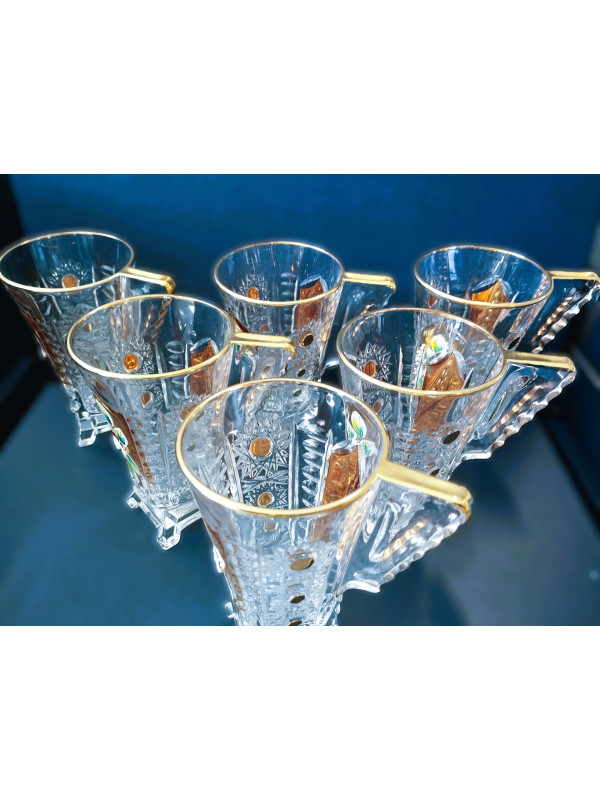 Broušené čajové hrnečky 175 ml, zlato a smalt 6ks