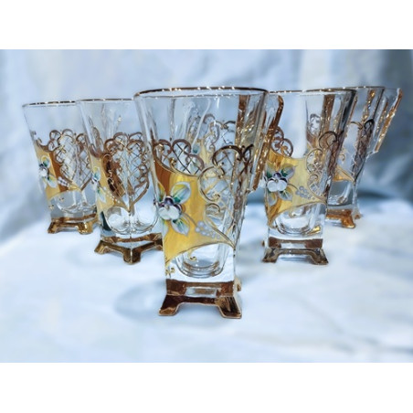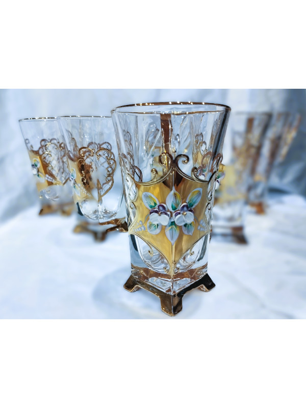 Bohatě zdobené čajové hrnečky o objemu 175 ml. Hrnečky jsou ručně zdobené smaltem a zlatem. Sada obsahuje šest kusů hrnečků . Hrnečky nesmí do myčky.