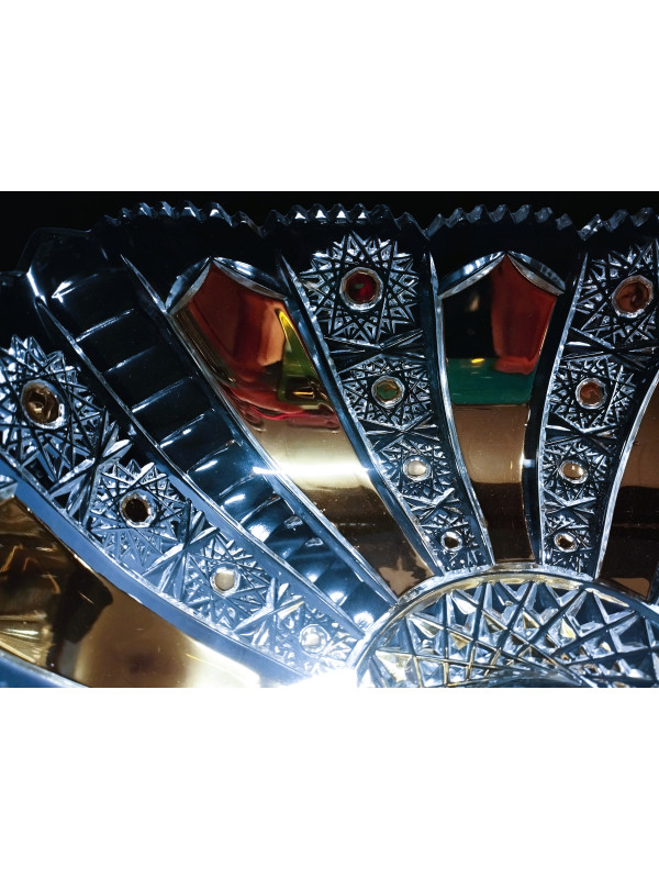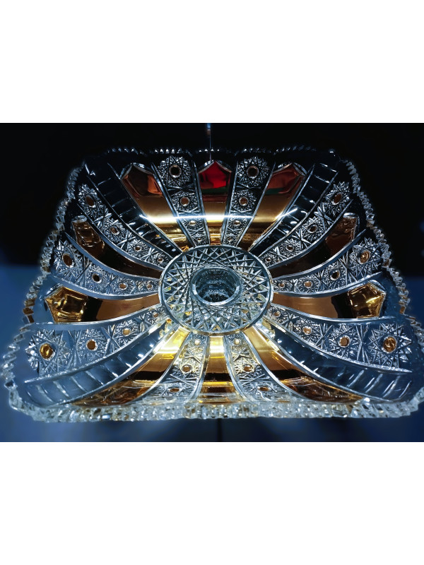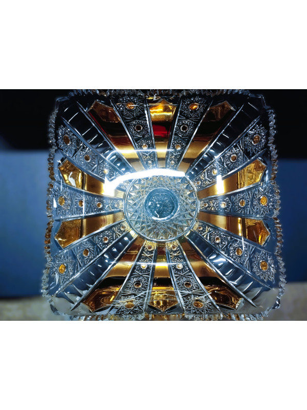 Luxusní, jemně broušený 4 hranný talíř, zdobený zlatem a smaltem. Velikost talíře je 28 cm. Vhodný jako ozdoba svátečního stolu.