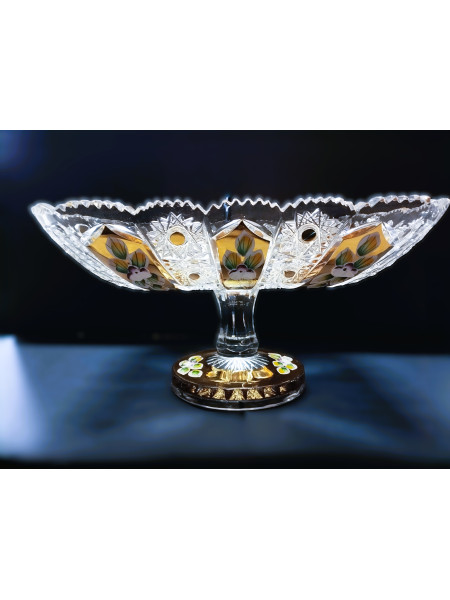 Broušený a zlacený 4 hranný talíř 28 cm na noze