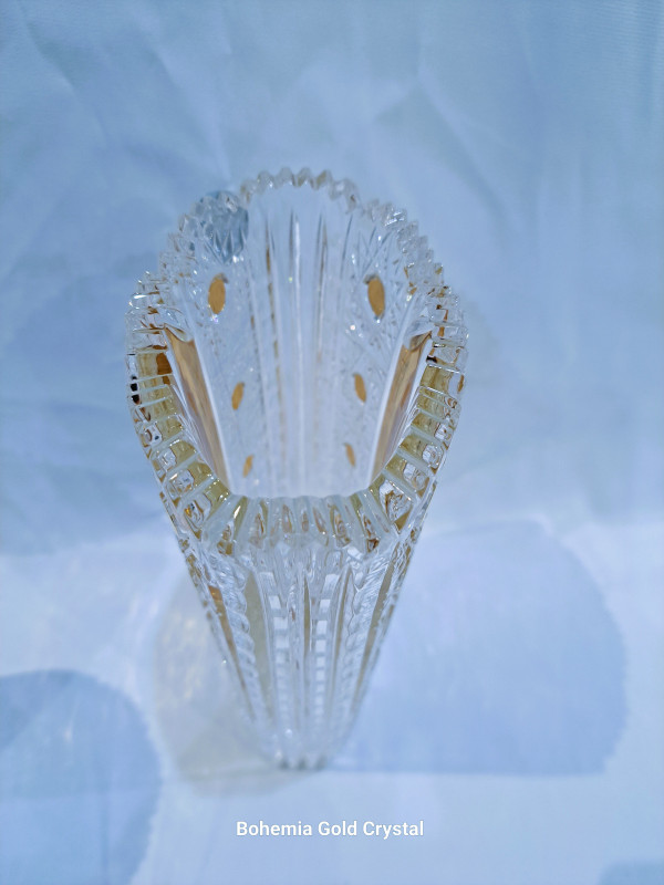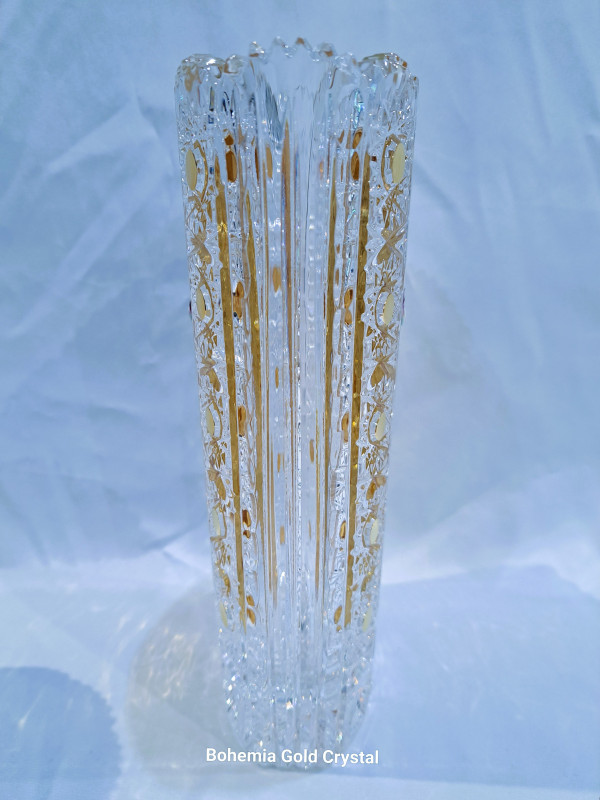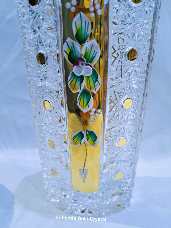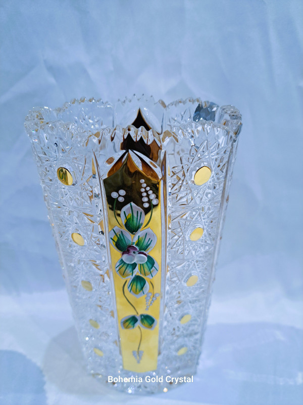 Váza zdobená zlatem a smaltem, dekor 57110. Tento druh dekoru je velmi oblíbeným zejména v zahraničí. Výška vázy je 23 cm. Nedávat do myčky! Ve stejném provedení naleznete v nabídce také sklenice či mísy.