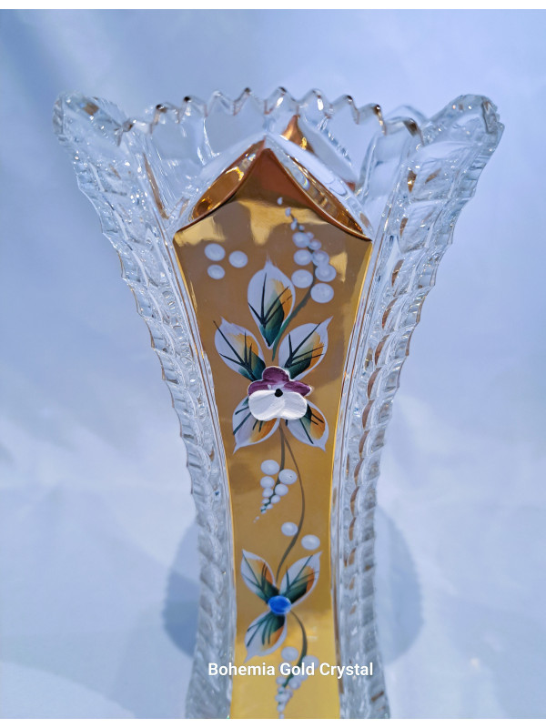 Váza zdobená zlatem a smaltem, dekor 57110. Tento druh dekoru je velmi oblíbeným zejména v zahraničí. Výška vázy je 20 cm. Nedávat do myčky! Ve stejném provedení naleznete v nabídce také sklenice či mísy.