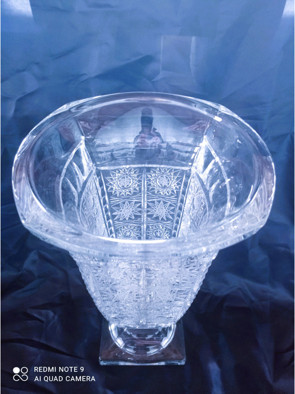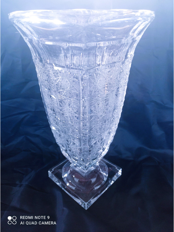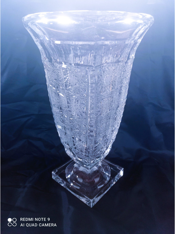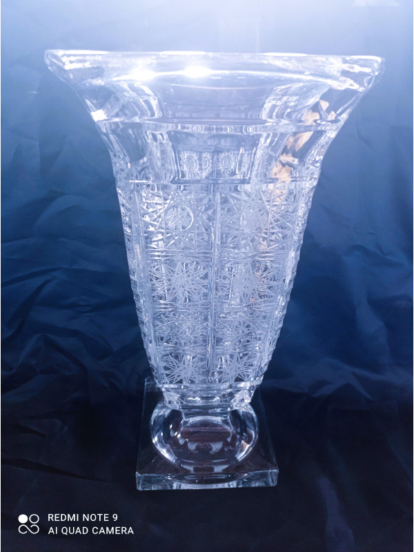Broušená, těžká váza z kolekce Magma. Váza má mohutnou a těžkou základnu, je broušena klasickým dekorem PK 500. Vybírat můžete z širokého sortimentu čirého či dekorovaného skla. Tuto vázu lze zakoupit ve velikosti 33 cm.