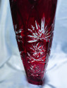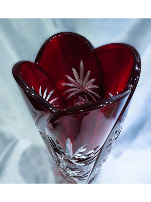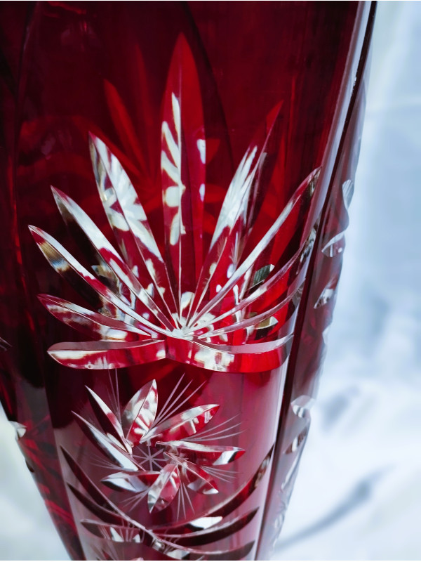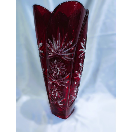 Mohutná těžká váza tmavě červená z kolekce Globus. Zdobená je brusem větrníku. Výška vázy činí 35 cm.