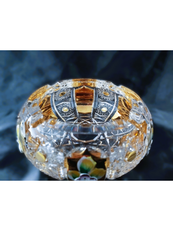 Geschliffener Aschenbecher 70086/57110/130 verziert mit Gold und Emaille