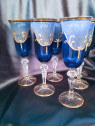 Blaue Champagnergläser mit Golddekor, 150 ml, 6 Stück.