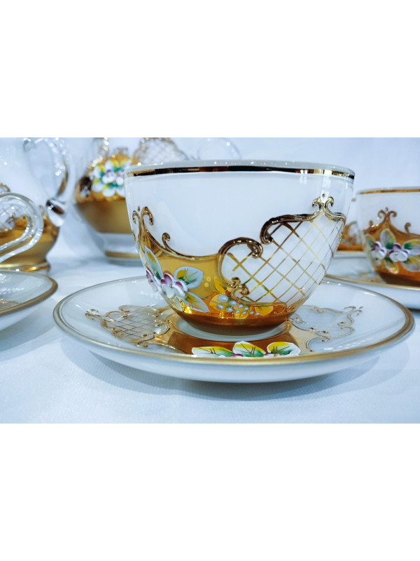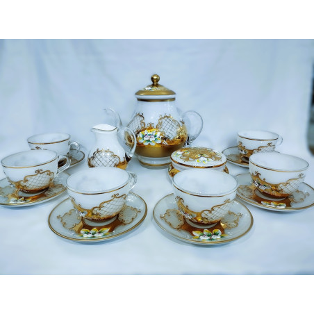 Luxuriöses weißes Emaille-Teeservice mit Goldverzierungen