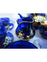 Luxuriöses blaues Emaille-Teeservice mit Goldverzierungen
