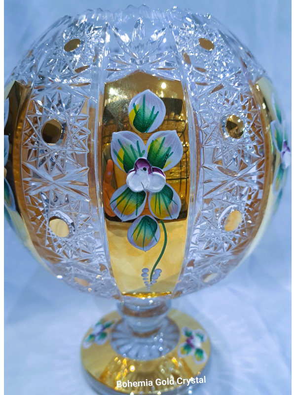Eine prächtige und massive Schale auf einem geschliffenen Glasfuß. Dies ist ein wunderschönes Stück, das mit dem handgeschliffenen Dekor 57110 verziert ist. Die Höhe der Schale beträgt 26 cm, die Breite 20,5 cm.