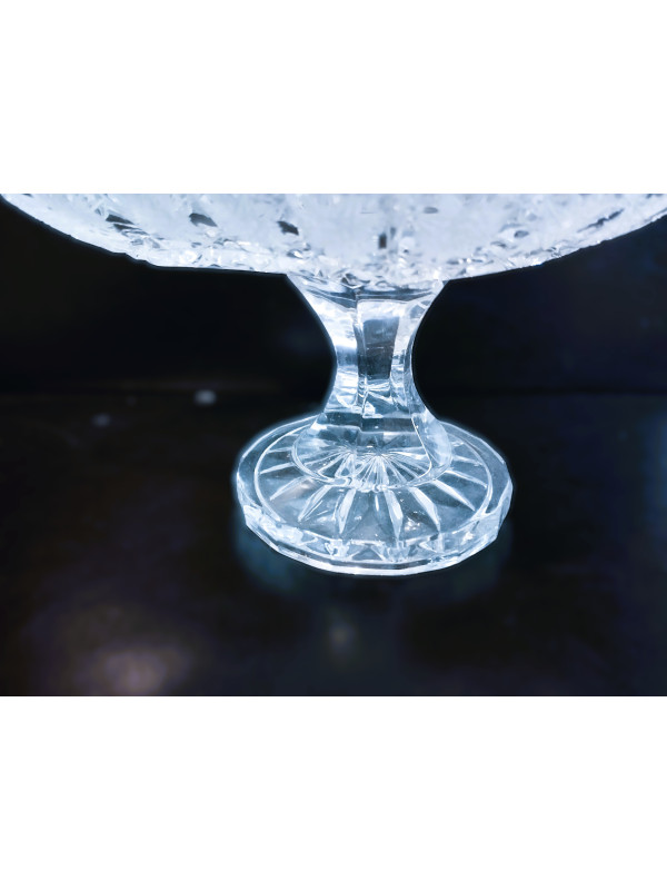 Reich geschnittene, abgeschrägte Schale auf einem Bein. Die Schüssel ist 21 cm lang.