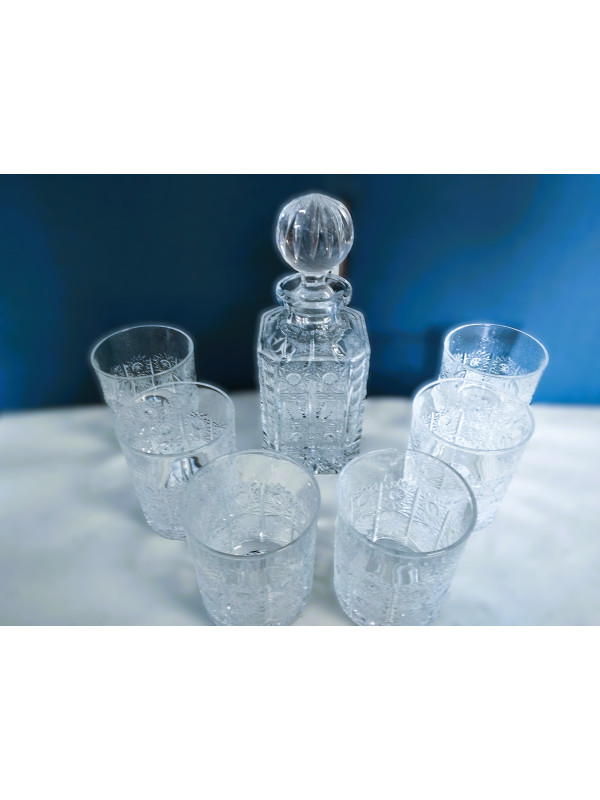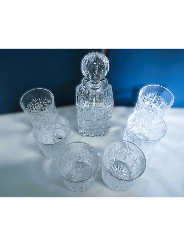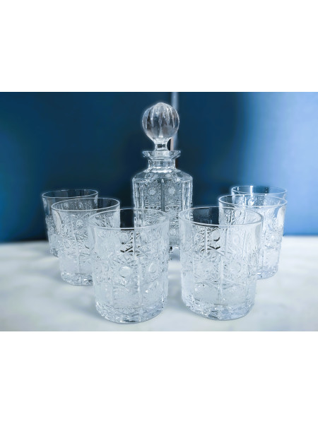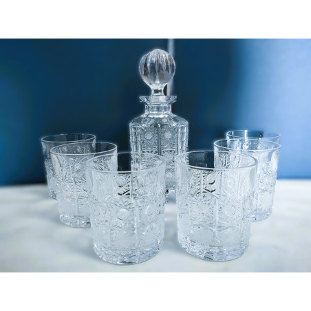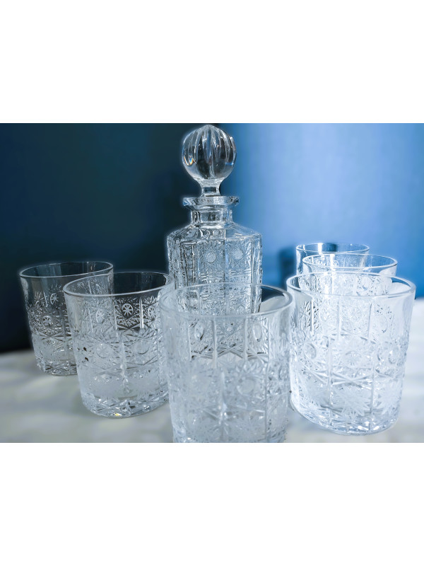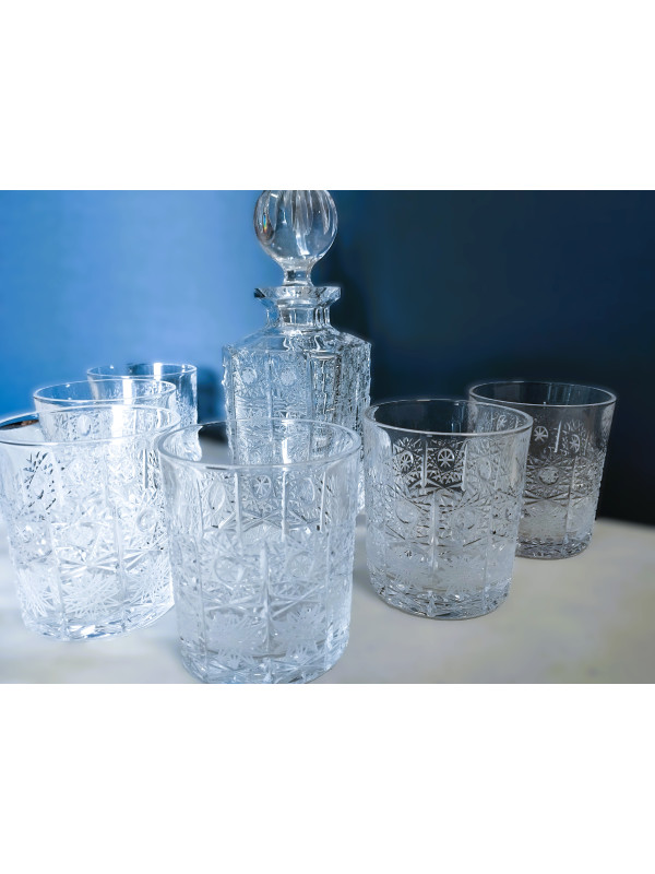 Ein originelles und wirklich elegantes Whisky-Set. Die Flasche und die Gläser werden nach dem Muster 57001 geschnitten. Das ist die präzise Arbeit tschechischer Schneider!