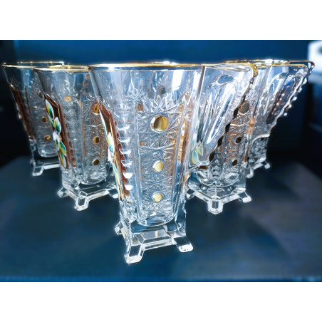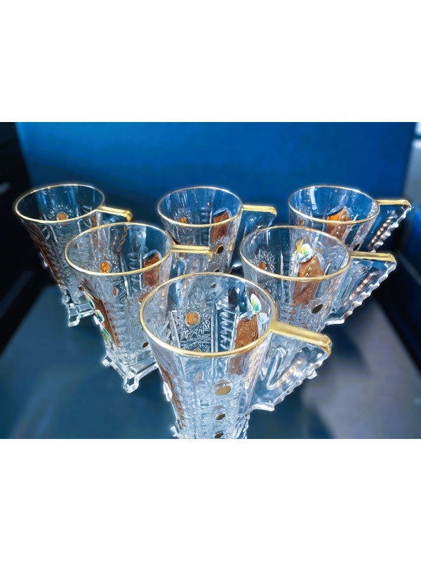 Reich verzierte Teebecher mit einem Fassungsvermögen von 175 ml. Die Becher sind handverziert mit Emaille und Gold. Das Set enthält sechs Becher. Die Becher sind nicht spülmaschinenfest.