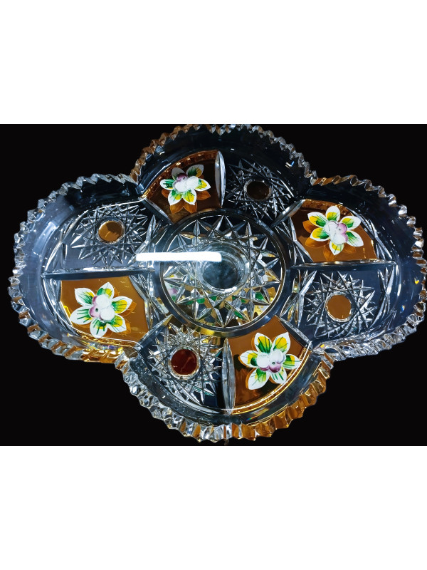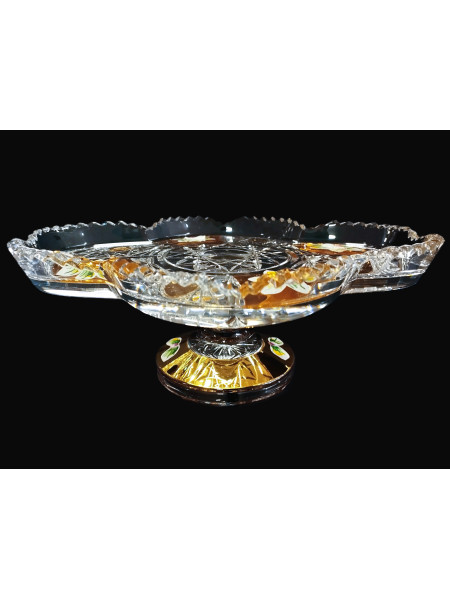 Geschnittener Teller „Vierpass“ auf einem Bein mit Gold und Emaille 24 cm