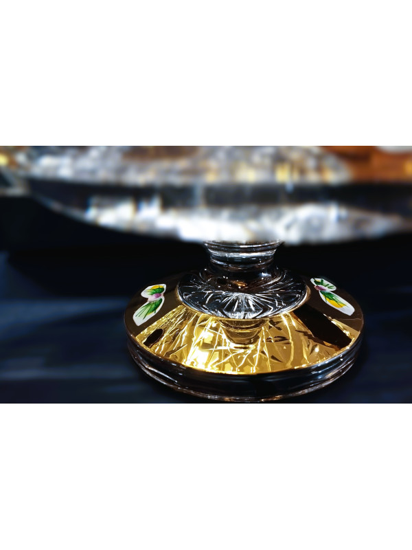 Geschnittener Teller auf einem Bein, Schnittmuster 57110, verziert mit Gold und Emaille, 24 cm. Geeignet als festliche Tischdekoration.
