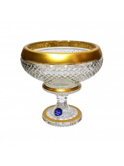 Table (= bowl on the leg) decorated with a sharp cut, applied with gold and a gold bar with cubes. The size of the bowl is 20.5 cm. Available in several sizes.