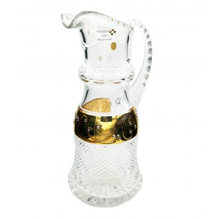 A beautiful larger jug with a volume of about 1500 ml decorated with hand-applied gold and fine stones. The lower part is decorated with a thorn-shaped cut. This is an original piece and there is only one piece in stock.