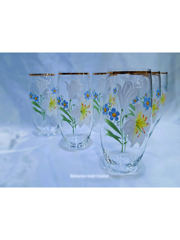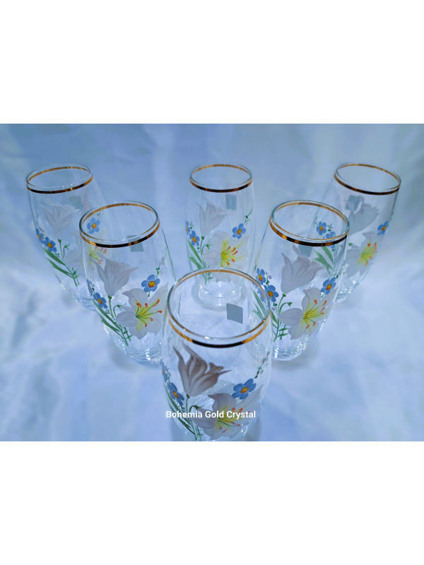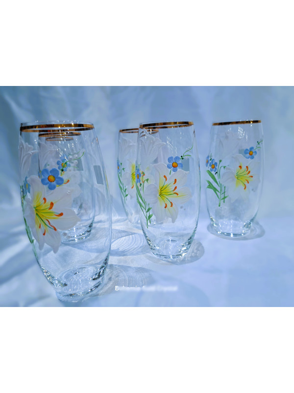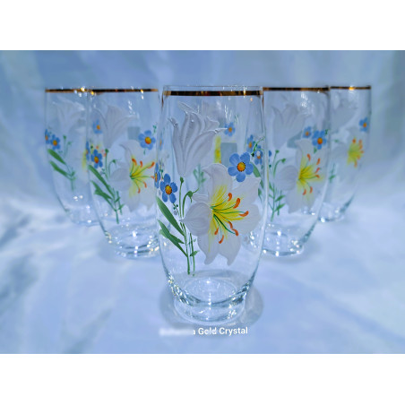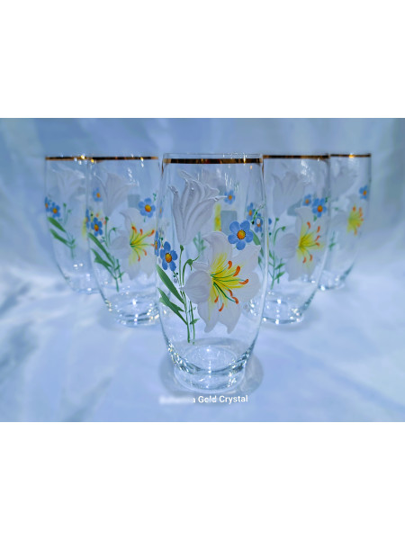 Glass for water, juice, decorated with gold and hand-painted flowers. The height of the glasses is 14 cm. The set contains 6 pieces.