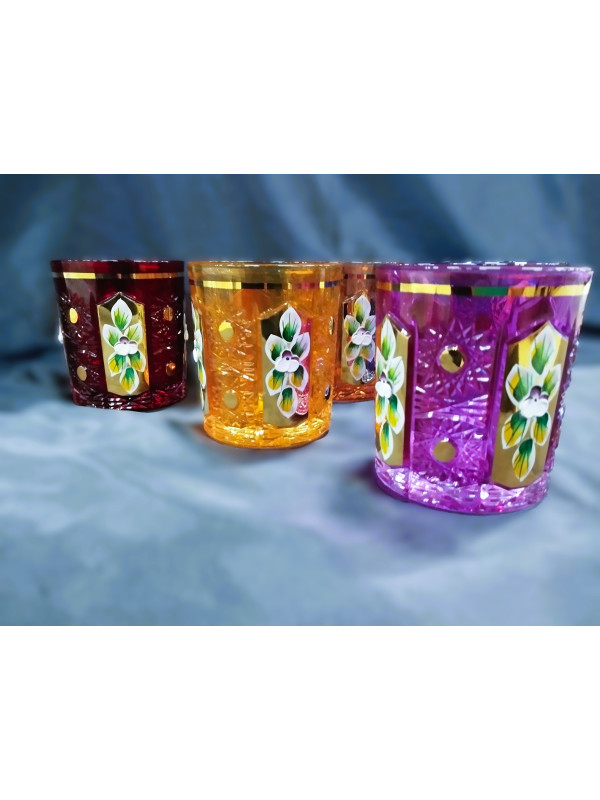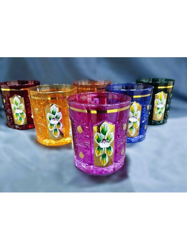 Richly decorated colorful whiskey glasses in the 57110 decor, which is especially popular abroad. The glasses are hand-decorated with enamel and gold. The volume is 320 ml. The set contains six pieces. The glasses are not dishwasher safe.