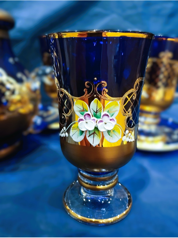 Tea glasses Venezia with saucers blue, gold and enamel 6 + 6 pcs