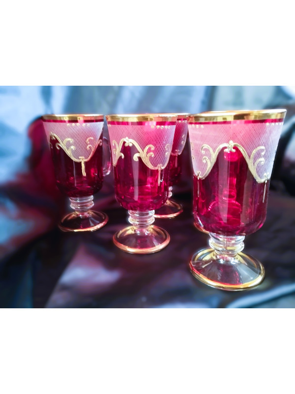 Red Venezia tea glasses with gold motif 150 ml, 6 pcs.