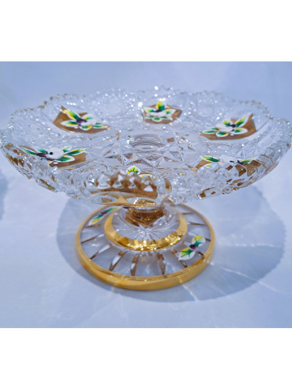 Cut plate on a leg with gold and enamel 21 cm