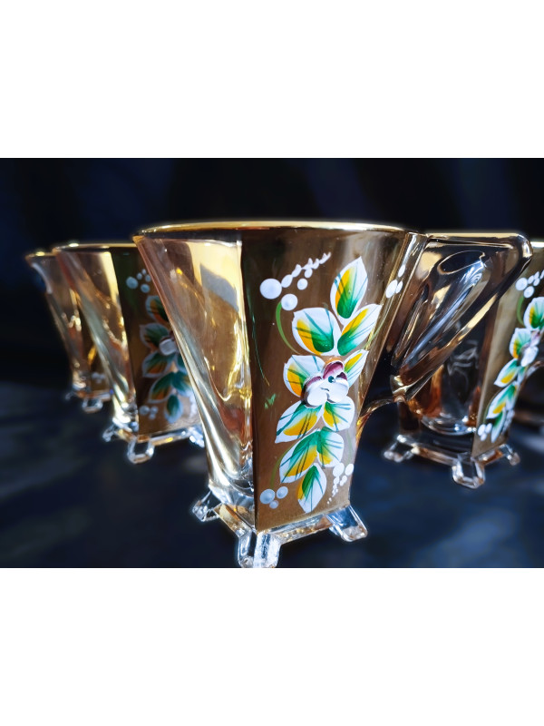 Tazas de té 150 ml, doradas y esmaltadas 6uds