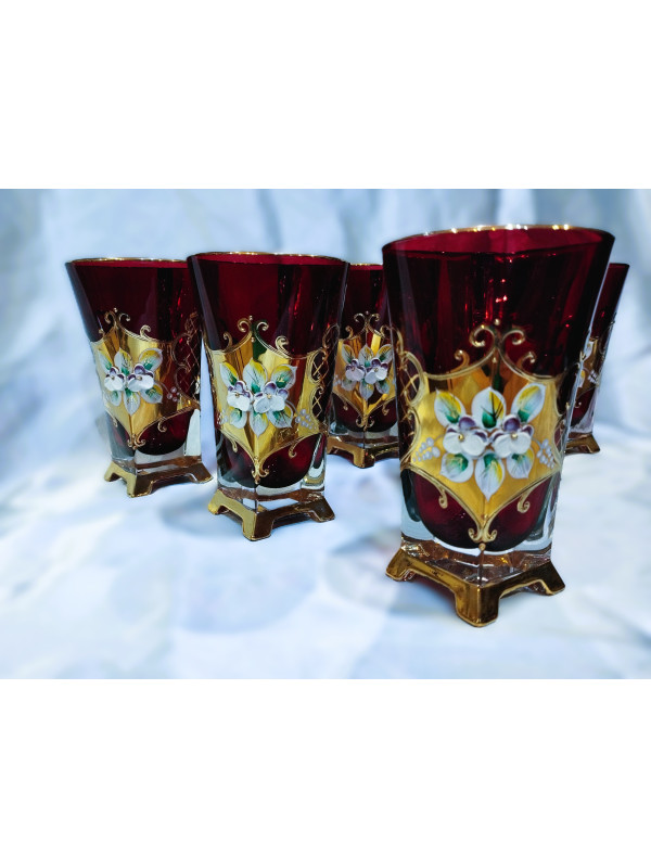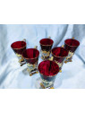 Tazas de té rojas ricamente decoradas con una capacidad de 175 ml. Decoradas a mano con esmalte y oro. El juego incluye seis tazas. No aptas para lavavajillas.