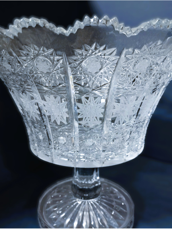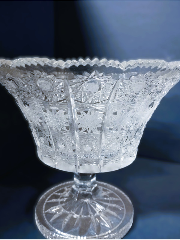 Un cuenco abierto, ricamente cortado sobre una pierna, cortado según el patrón 57001. El cuenco tiene un diámetro de 25 cm.
