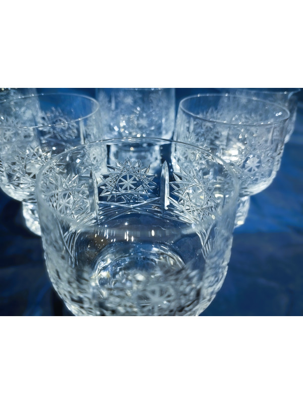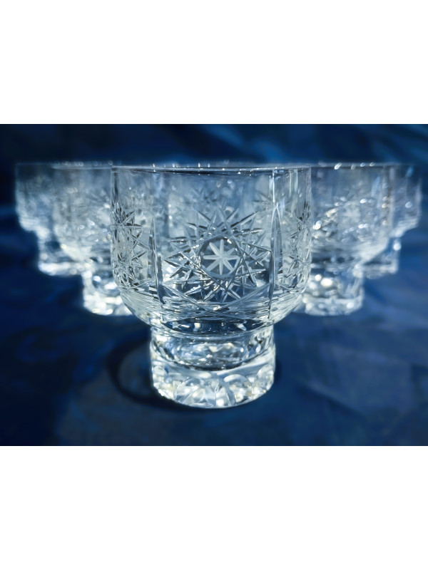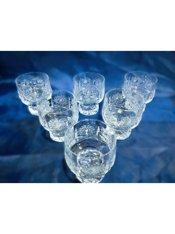 Copas de licor cortadas con el patrón PK 500. Este es vidrio checo. El volumen del vaso es de 35 ml, el juego contiene seis piezas. ¡Solo cantidades limitadas disponibles!