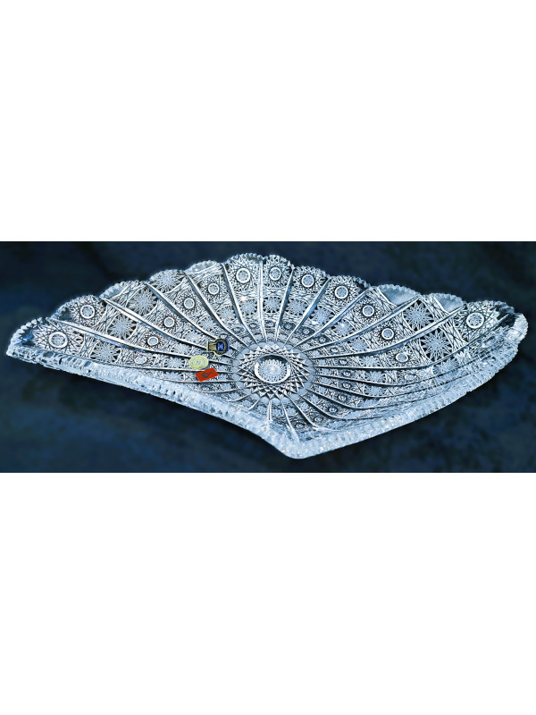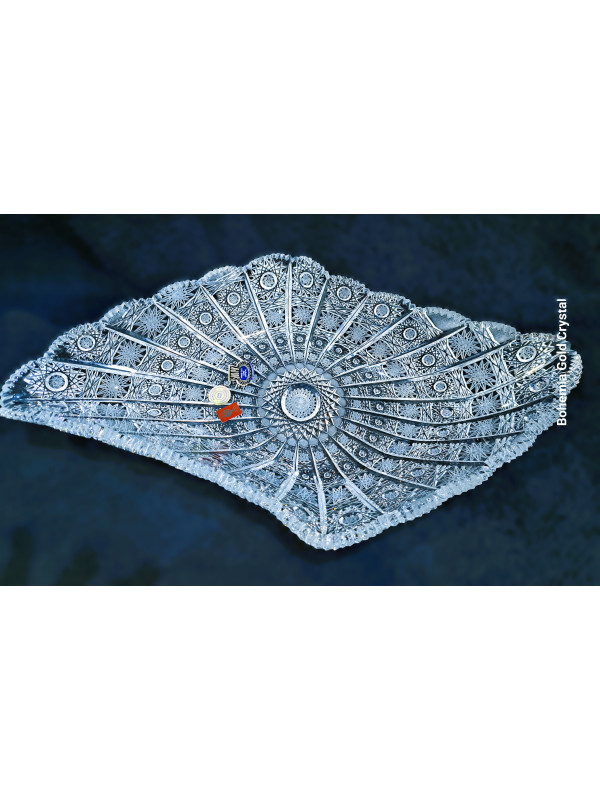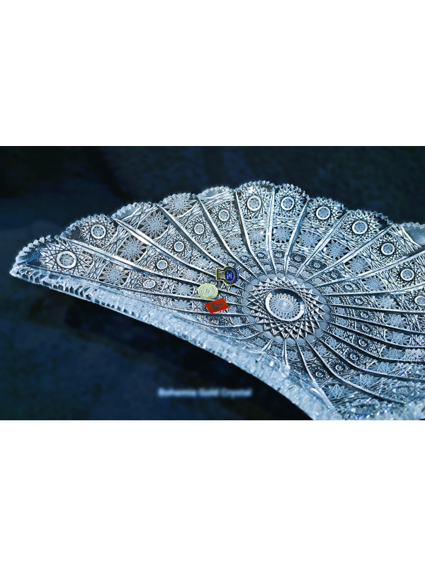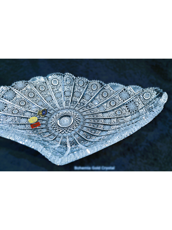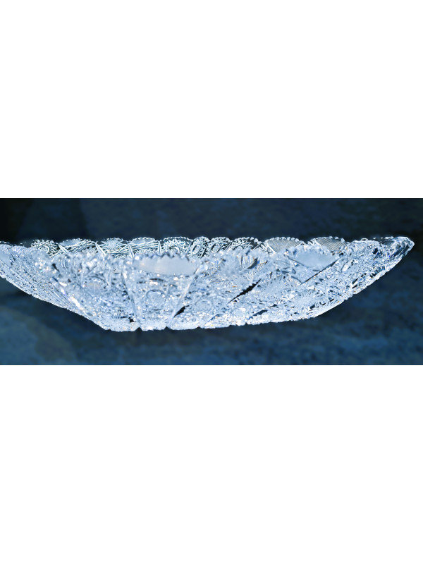 Cortar el cuenco de cristal biselado. Decorado a mano con adornos luminosos en forma de copo de nieve - PK 500. Tamaño del cuenco 45 cm cm.