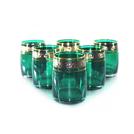 Un juego de seis vasos de la colección Ideal con un volumen de 250 ml. Las copas están decoradas con colores fríos y platino con finos adornos. Ofrecemos tres variantes de color (verde, rojo, azul).