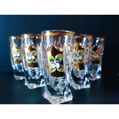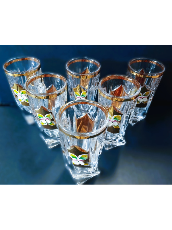 Vasos de vodka Crystalite Bohemia bañados en oro Quadro de 50 ml, 6 uds.