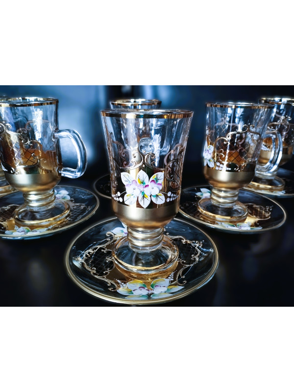 Vasos de té Venezia con platillos, dorados y esmaltados 6 + 6 uds.