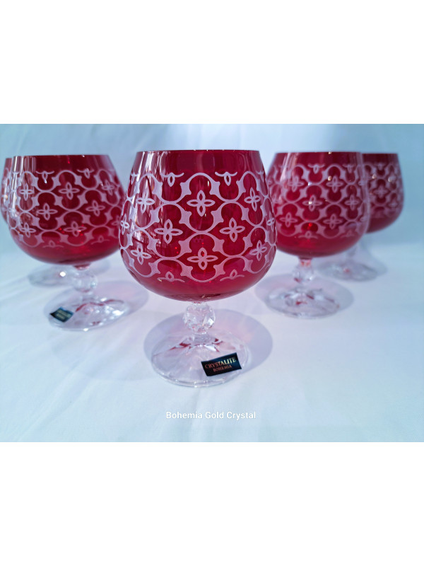 Originales copas finas de coñac rojo con decoración estampada. El volumen del vaso es de 250 ml, el paquete contiene 6 piezas.