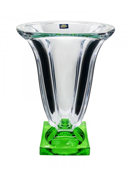 Jarrón macizo de la colección Magma con base de color. El jarrón es relativamente macizo y mide 29 cm de alto, con una anchura de 19,5 cm en su punto más ancho. También disponible transparente o lijado y en versión más pequeña.