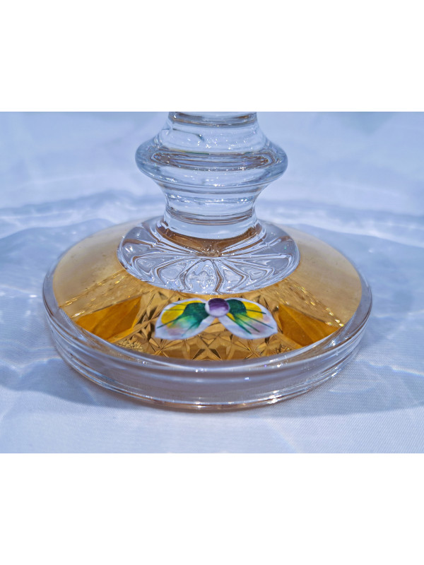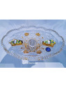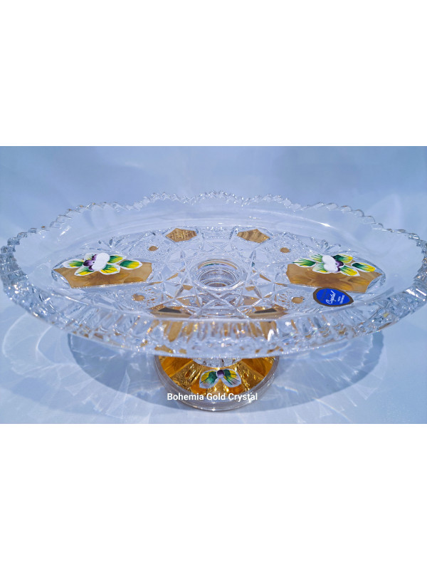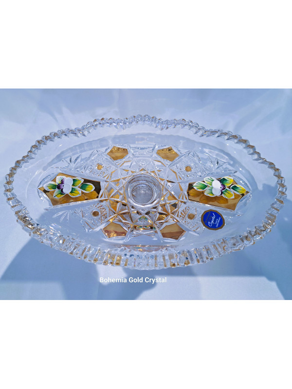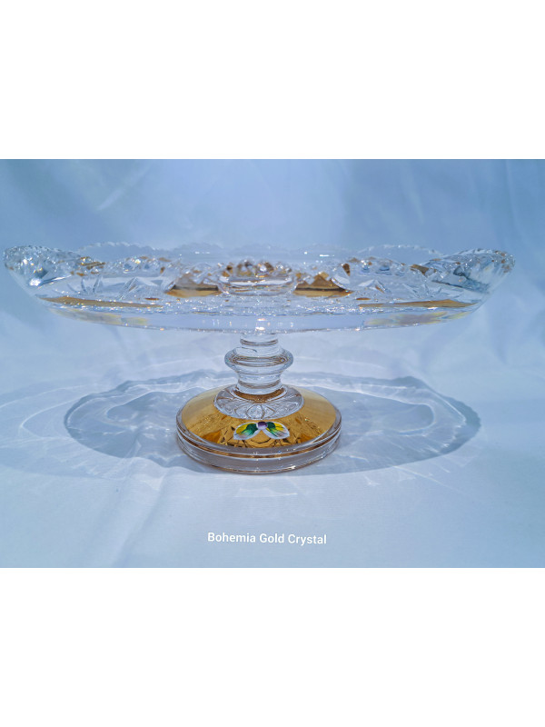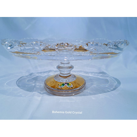 Un plato ovalado tallado sobre una pata decorada con oro y esmalte. El diámetro del plato es de 24 cm, la altura es de 9 cm. Adecuado como decoración de mesa navideña.