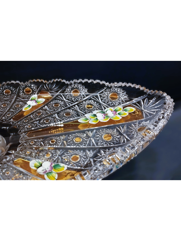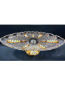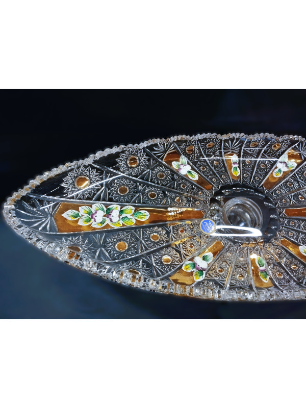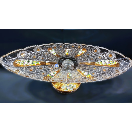 Luxueuse assiette ovale finement découpée, décorée d'or et d'émail. La longueur de l'assiette est de 55 cm. Convient comme décoration de table de vacances.
